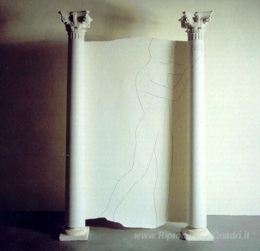 Ti offriamo una riproduzione artigianale su tela dell'opera famosa 'Caryatide' di Giulio Paolini, dal Museo delle Riproduzioni.