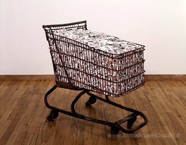 Ti offriamo una riproduzione artigianale su tela dell'opera famosa 'Colllateral' di Hans Haacke, dal Museo delle Riproduzioni.