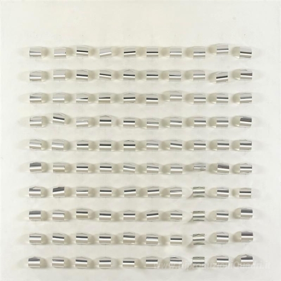 Ti offriamo una riproduzione artigianale su tela dell'opera famosa 'CONTINUEL-MOBILE AU PLAFON CONTINGENERS de Lumière' di Julio Le Parc, dal Museo delle Riproduzioni.