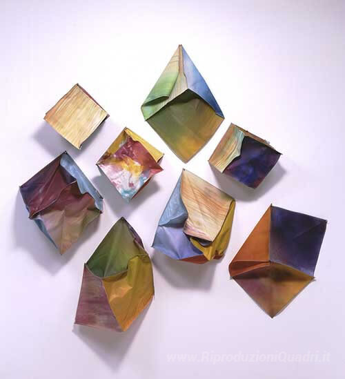 Ti offriamo una riproduzione artigianale su tela dell'opera famosa 'Cubi' di Sam Gilliam, dal Museo delle Riproduzioni.