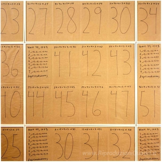 Ti offriamo una riproduzione artigianale su tela dell'opera famosa 'Das Jahr' di Hanne Darboven, dal Museo delle Riproduzioni.