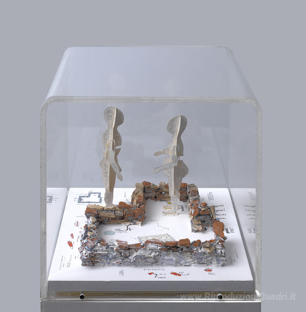 Ti offriamo una riproduzione artigianale su tela dell'opera famosa 'Ebdòmero e l'architetto' di Gianfranco Baruchello, dal Museo delle Riproduzioni.