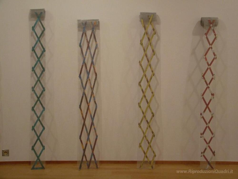 Ti offriamo una riproduzione artigianale su tela dell'opera famosa 'Echelles Petite versare Vent d'Ouest' di Daniel Dezeuze, dal Museo delle Riproduzioni.