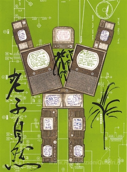 Ti offriamo una riproduzione artigianale su tela dell'opera famosa 'Evoluzione, rivoluzione, Risoluzione' di Nam June Paik, dal Museo delle Riproduzioni.