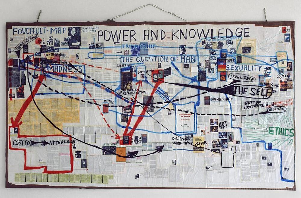 Ti offriamo una riproduzione artigianale su tela dell'opera famosa 'Foucault Mappa' di Thomas Hirschhorn, dal Museo delle Riproduzioni.