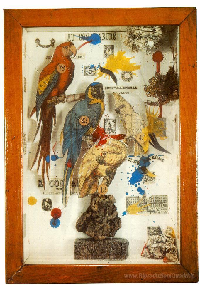 Ti offriamo una riproduzione artigianale su tela dell'opera famosa 'Habitat Group per un tiro a segno' di Joseph Cornell, dal Museo delle Riproduzioni.