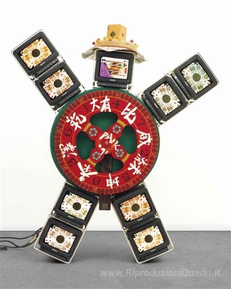 Ti offriamo una riproduzione artigianale su tela dell'opera famosa 'I Ching 36' di Nam June Paik, dal Museo delle Riproduzioni.