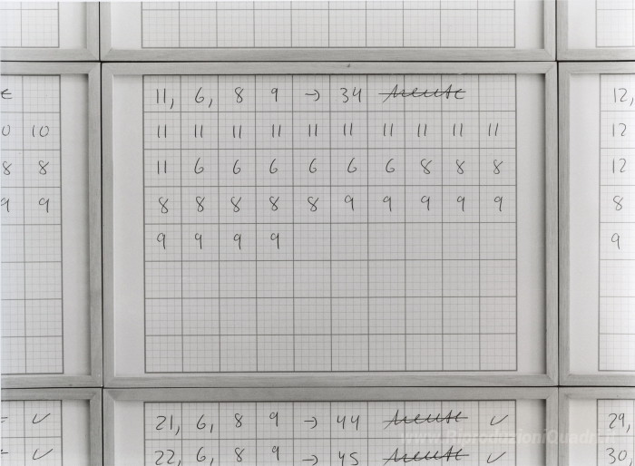 Ti offriamo una riproduzione artigianale su tela dell'opera famosa 'III 15 Din 14' di Hanne Darboven, dal Museo delle Riproduzioni.