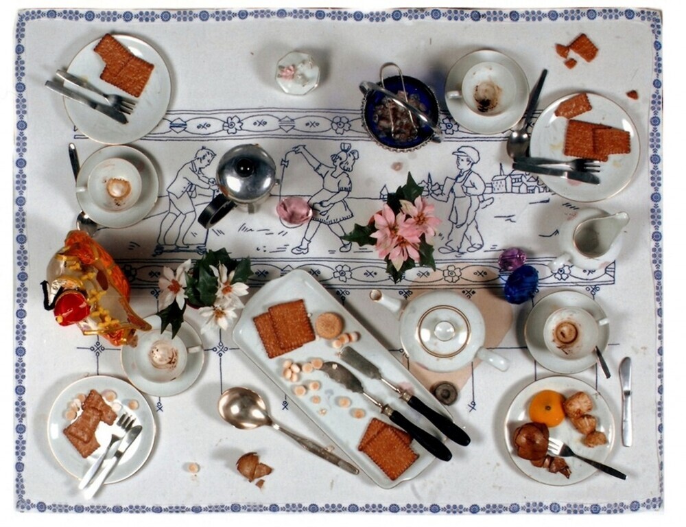 Ti offriamo una riproduzione artigianale su tela dell'opera famosa 'Immagine Rullante' di Daniel Spoerri, dal Museo delle Riproduzioni.