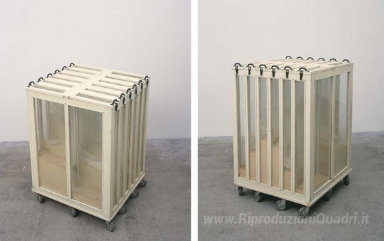 Ti offriamo una riproduzione artigianale su tela dell'opera famosa 'Knoblauchtruhe' di Dieter Roth, dal Museo delle Riproduzioni.