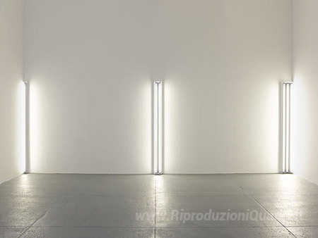 Ti offriamo una riproduzione artigianale su tela dell'opera famosa 'La nominale di tre (a Guglielmo di Ockham)' di Dan Flavin, dal Museo delle Riproduzioni.