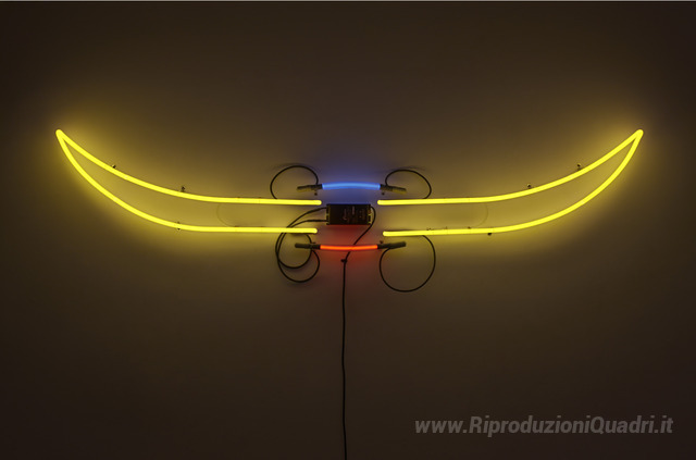 Ti offriamo una riproduzione artigianale su tela dell'opera famosa 'Longhorn Studio' di Keith Sonnier, dal Museo delle Riproduzioni.