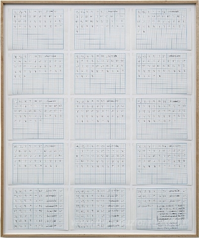 Ti offriamo una riproduzione artigianale su tela dell'opera famosa 'Monat Dezember XII 89' di Hanne Darboven, dal Museo delle Riproduzioni.