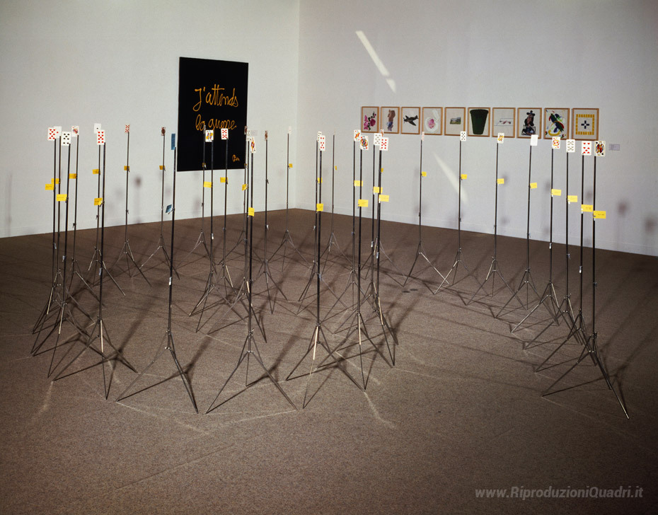 Ti offriamo una riproduzione artigianale su tela dell'opera famosa 'Musique télépathique n ° 5' di Robert Filliou, dal Museo delle Riproduzioni.