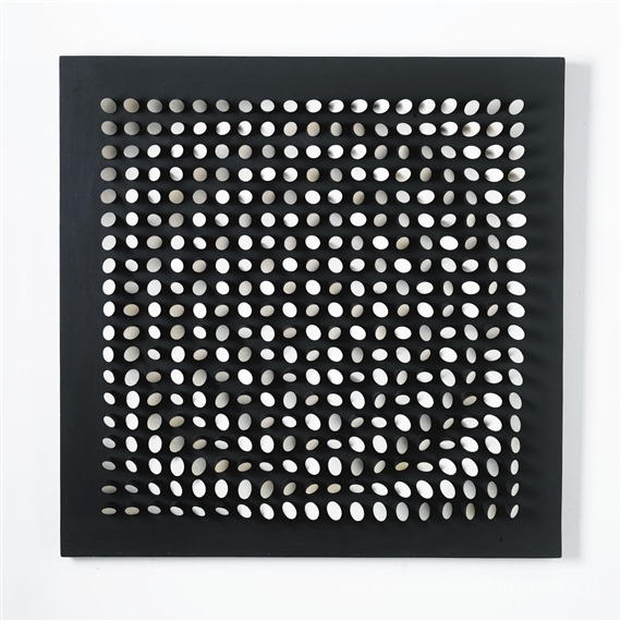 Ti offriamo una riproduzione artigianale su tela dell'opera famosa 'Ordinazione d'une surface, vitesses progressisti de rotazione' di Julio Le Parc, dal Museo delle Riproduzioni.