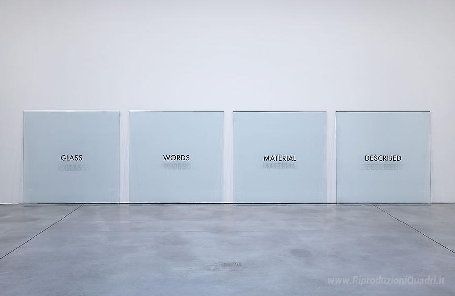 Ti offriamo una riproduzione artigianale su tela dell'opera famosa 'Parole Glass materiale descritto' di Joseph Kosuth, dal Museo delle Riproduzioni.
