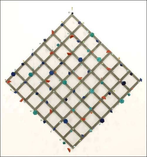 Ti offriamo una riproduzione artigianale su tela dell'opera famosa 'Peinture qui perle blanche' di Daniel Dezeuze, dal Museo delle Riproduzioni.
