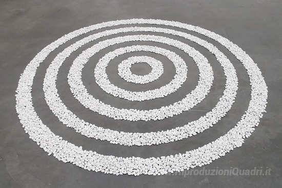 Ti offriamo una riproduzione artigianale su tela dell'opera famosa 'Piccolo Bianco Pebble Circles Data' di Richard Long, dal Museo delle Riproduzioni.