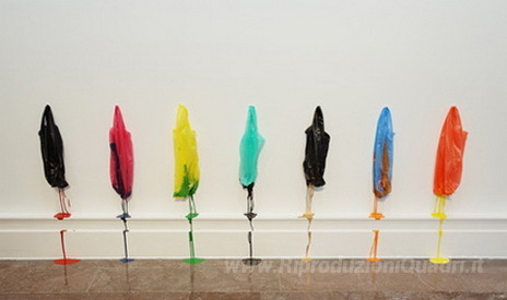 Ti offriamo una riproduzione artigianale su tela dell'opera famosa 'Plaza' di Jim Lambie, dal Museo delle Riproduzioni.
