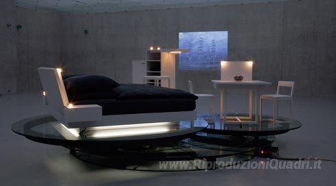 Ti offriamo una riproduzione artigianale su tela dell'opera famosa 'Revolving Hotel Room' di Carsten Holler, dal Museo delle Riproduzioni.