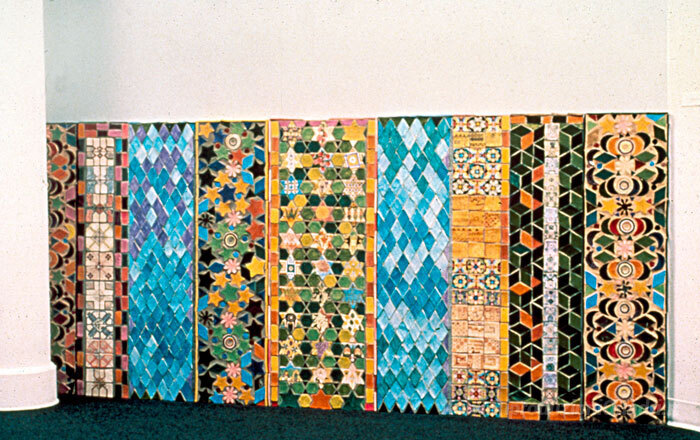 Benvenuti nella nostra selezione di dipinti a olio, dove la bellezza e l'arte si fondono in una sinfonia di colori e forme. Oggi vi presentiamo l'opera Rivestimento di legno di Joyce Kozloff, un'artista di fama internazionale, nota per il suo impegno nella rielaborazione di elementi tradizionali e contemporanei. L'opera esprime una fusione armoniosa di influenze culturali e uno sguardo innovativo sulla decorazione e l'architettura.