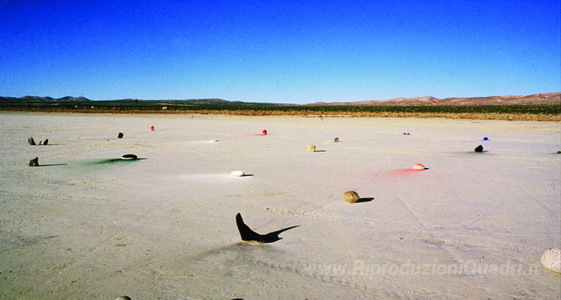 Ti offriamo una riproduzione artigianale su tela dell'opera famosa 'Rock and pigmento installazione' di Lita Albuquerque, dal Museo delle Riproduzioni.