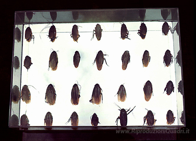 Ti offriamo una riproduzione artigianale su tela dell'opera famosa 'Scatola di scarafaggi' di Lygia Pape, dal Museo delle Riproduzioni.
