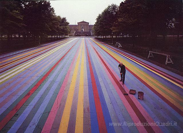 Ti offriamo una riproduzione artigianale su tela dell'opera famosa 'Sentiero di Franklin' di Gene Davis, dal Museo delle Riproduzioni.