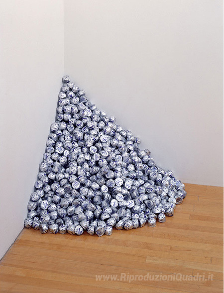 Ti offriamo una riproduzione artigianale su tela dell'opera famosa 'Senza titolo (A Corner of Baci)' di Felix Gonzalez-Torres, dal Museo delle Riproduzioni.