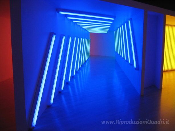 Ti offriamo una riproduzione artigianale su tela dell'opera famosa 'Senza titolo (al mio caro cagna, con disinvoltura)' di Dan Flavin, dal Museo delle Riproduzioni.