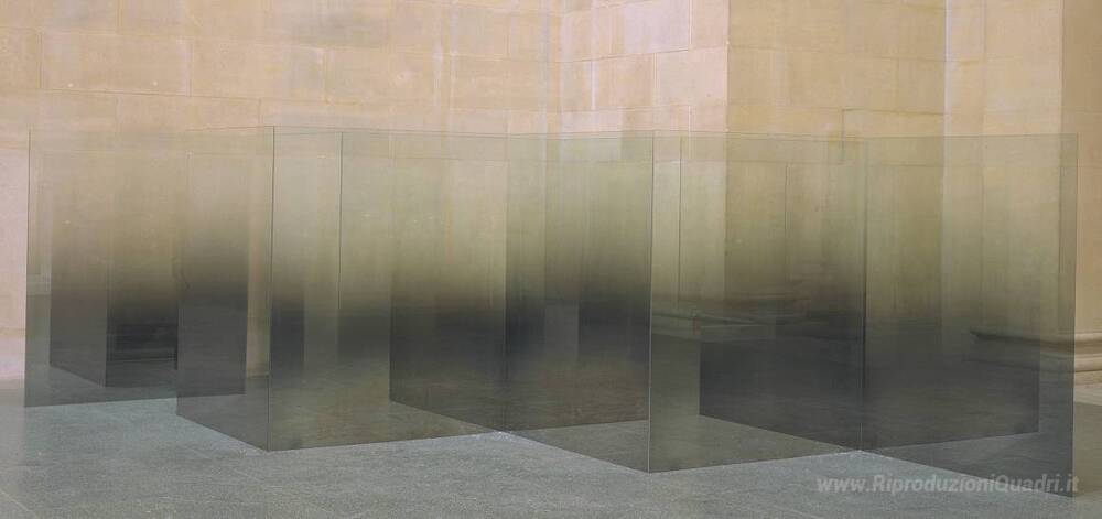 Ti offriamo una riproduzione artigianale su tela dell'opera famosa 'Senza titolo' di Larry Bell, dal Museo delle Riproduzioni.