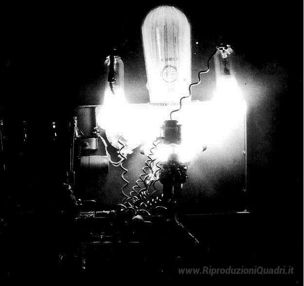 Ti offriamo una riproduzione artigianale su tela dell'opera famosa 'Télélumière II' di Takis, dal Museo delle Riproduzioni.