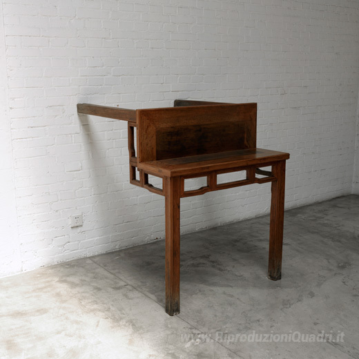 Ti offriamo una riproduzione artigianale su tela dell'opera famosa 'Tavolo con due gambe sul muro' di Ai Weiwei, dal Museo delle Riproduzioni.