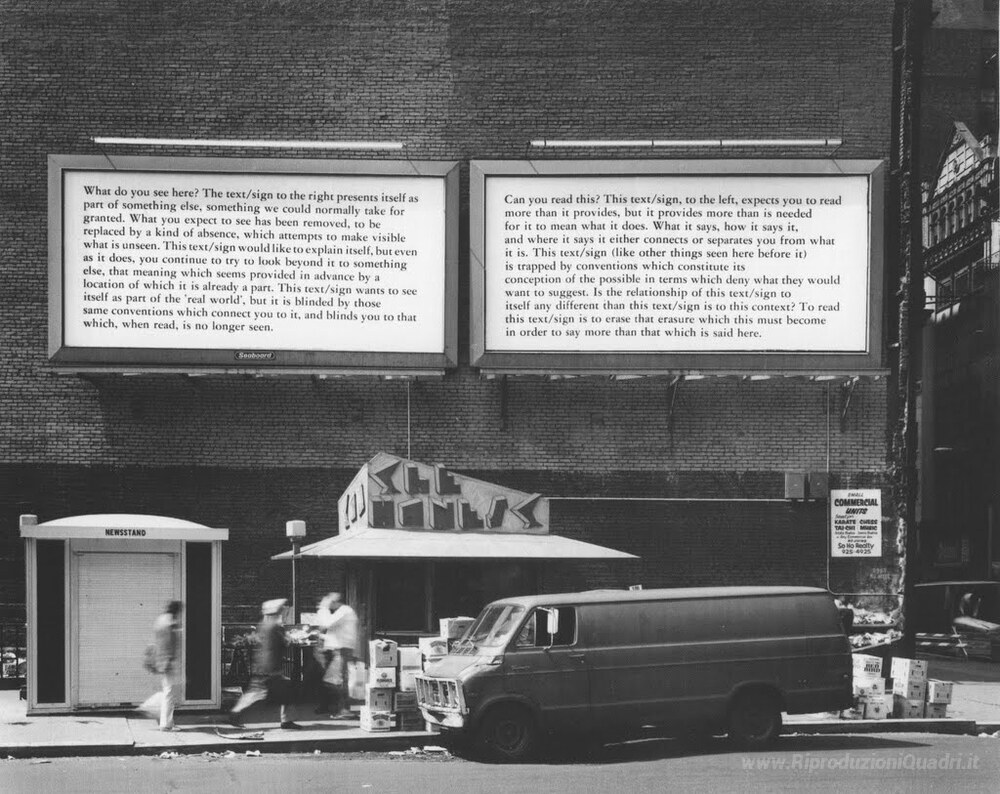 Ti offriamo una riproduzione artigianale su tela dell'opera famosa 'Text-Context' di Joseph Kosuth, dal Museo delle Riproduzioni.