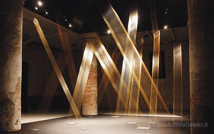 Ti offriamo una riproduzione artigianale su tela dell'opera famosa 'Ttéia 1, C' di Lygia Pape, dal Museo delle Riproduzioni.