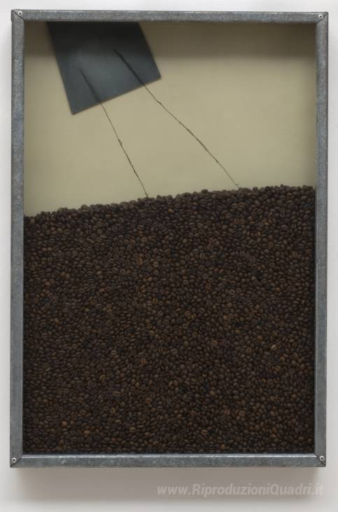 Ti offriamo una riproduzione artigianale su tela dell'opera famosa 'Untitled (caffè)' di Jannis Kounellis, dal Museo delle Riproduzioni.