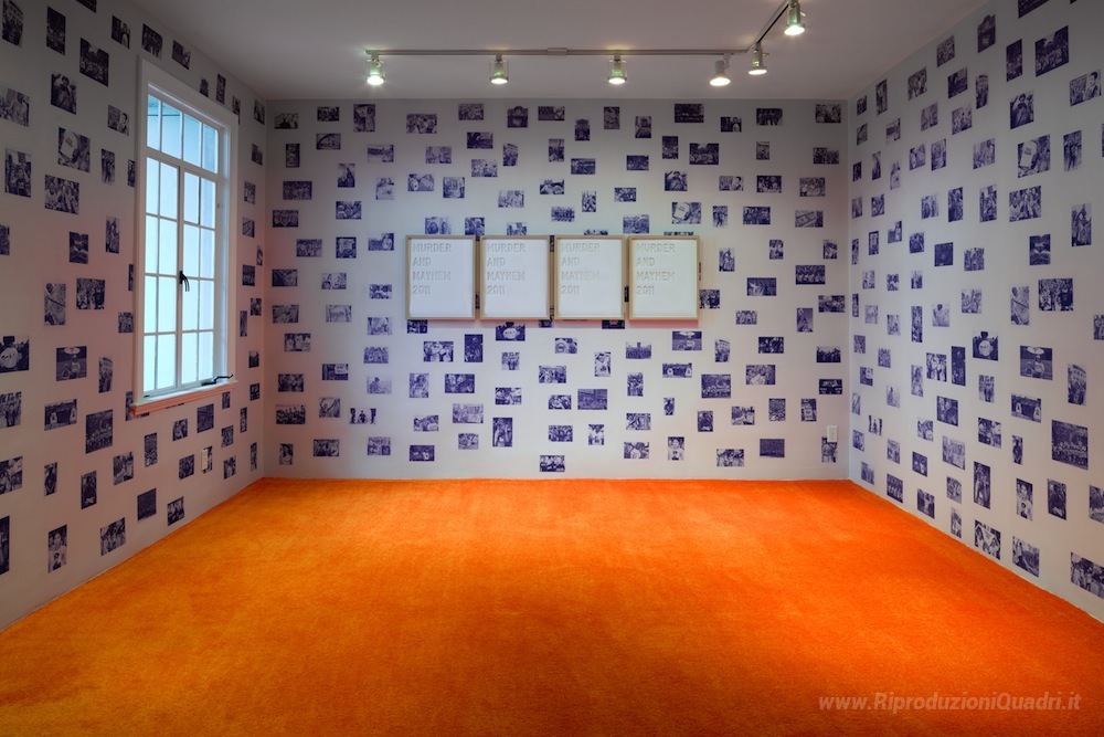 Ti offriamo una riproduzione artigianale su tela dell'opera famosa 'Untitled (omicidi e caos)' di Rirkrit Tiravanija, dal Museo delle Riproduzioni.