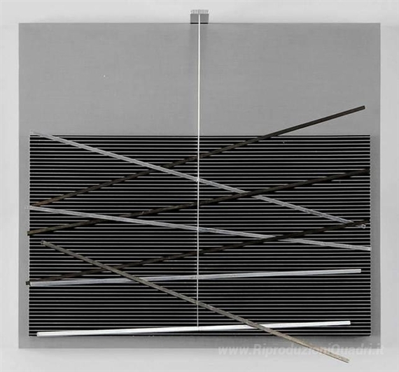 Ti offriamo una riproduzione artigianale su tela dell'opera famosa 'Vibrazioni métalliques' di Jesus Rafael Soto, dal Museo delle Riproduzioni.