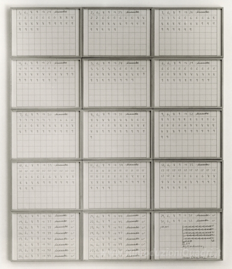 Ti offriamo una riproduzione artigianale su tela dell'opera famosa 'VII 15 Din 14' di Hanne Darboven, dal Museo delle Riproduzioni.