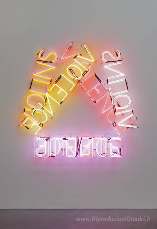 Ti offriamo una riproduzione artigianale su tela dell'opera famosa 'Violini Violenza Silenzio' di Bruce Nauman, dal Museo delle Riproduzioni.