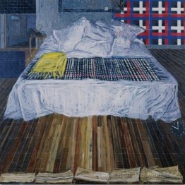 Interni, camera da letto con due figure