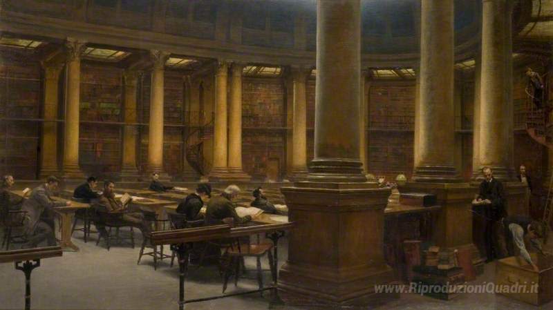 Ti offriamo una riproduzione artigianale su tela dell'opera famosa 'Birmingham Library Reference, sala di lettura' di Edward R. Taylor, dal Museo delle Riproduzioni.