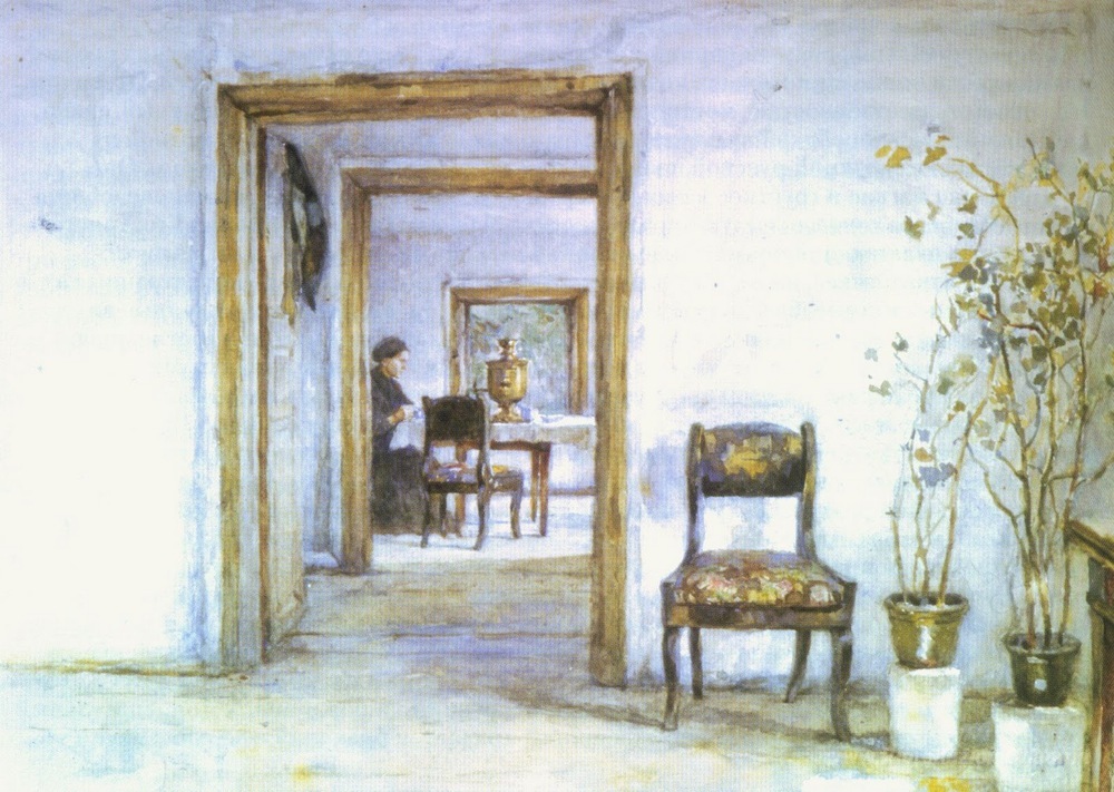 Ti offriamo una riproduzione artigianale su tela dell'opera famosa 'Camera in casa di Surikov' di Vasily Surikov, dal Museo delle Riproduzioni.