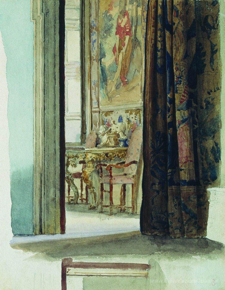 Ti offriamo una riproduzione artigianale su tela dell'opera famosa 'Frammento degli interni' di Fyodor Bronnikov, dal Museo delle Riproduzioni.