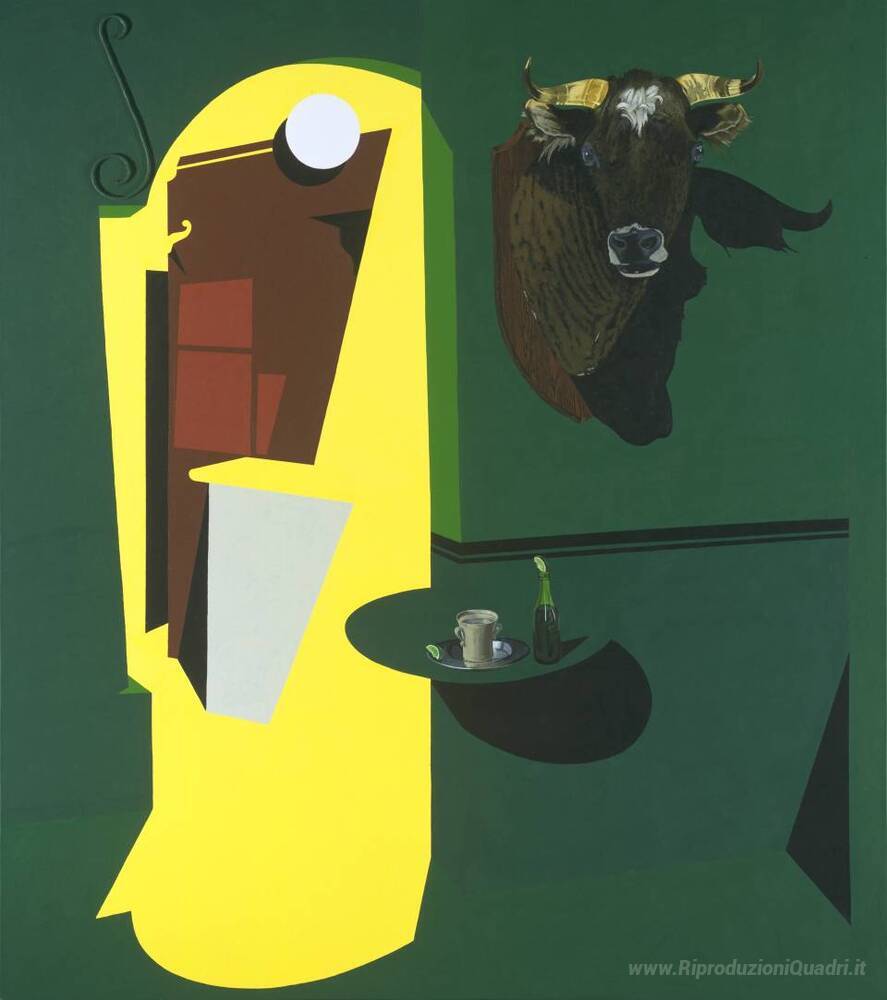 Scoprite il fascino senza tempo dell’arte italiana con il nostro dipinto a olio Hemingway Mai mangiato qui dell’acclamato artista Patrick Caulfield. Caulfield, noto per il suo stile distintivo che unisce il realismo pop a un'interpretazione vivace della realtà quotidiana, cattura momenti di vita attraverso colori audaci e forme semplificate. Ogni pennellata riflette una maestria tecnica che invita lo spettatore a esplorare il significato nascosto dietro l’immagine.