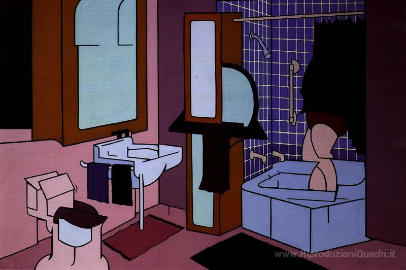 Ti offriamo una riproduzione artigianale su tela dell'opera famosa 'Hotel Chelsea Bagno' di Valerio Adami, dal Museo delle Riproduzioni.