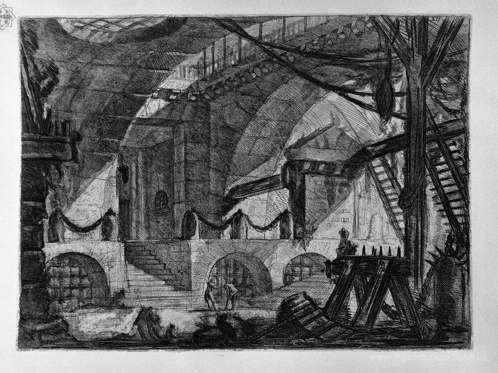 Ti offriamo una riproduzione artigianale su tela dell'opera famosa 'Il Cavalletto' di Giovanni Battista Piranesi, dal Museo delle Riproduzioni.
