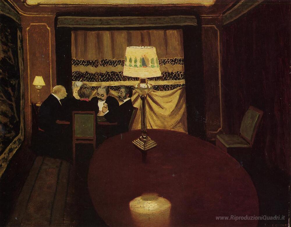 Ti offriamo una riproduzione artigianale su tela dell'opera famosa 'Il gioco di poker' di Felix Vallotton , dal Museo delle Riproduzioni.