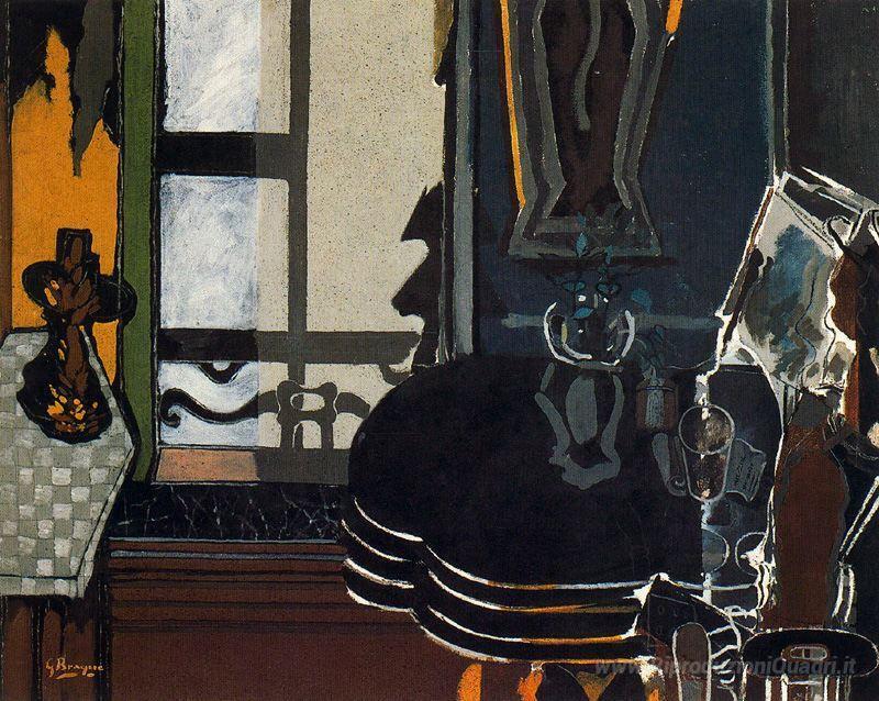 Ti offriamo una riproduzione artigianale su tela dell'opera famosa 'Il Salone' di Georges Braque, dal Museo delle Riproduzioni.