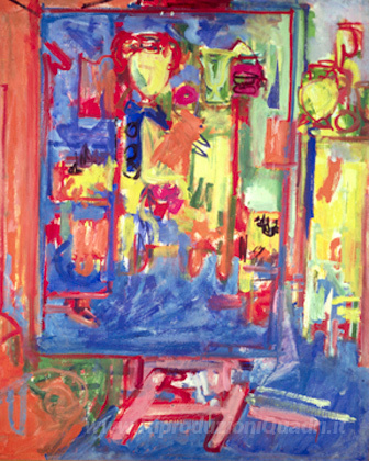 Ti offriamo una riproduzione artigianale su tela dell'opera famosa 'Interior Composizione' di Hans Hofmann, dal Museo delle Riproduzioni.